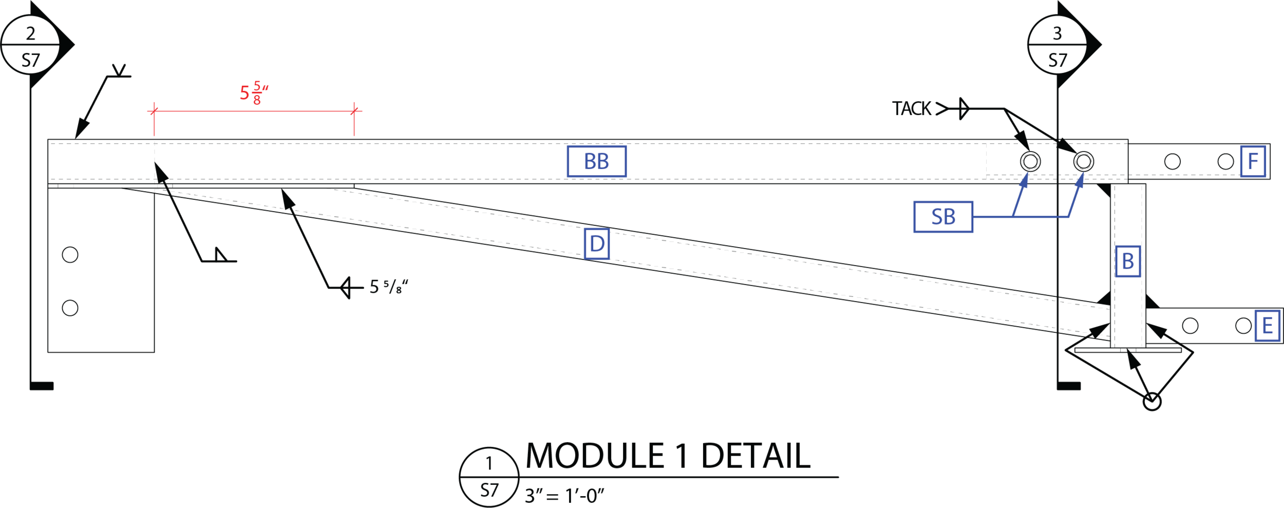 The approach that was taken was to use the largest number of prefabricated assemblies or “modules” that could then be rapidly connected during the timed building competition. This would both decrease the build time and the weight, since we had to comply with the maximum dimensions allowed for welded pieces, which required a small truss depth.